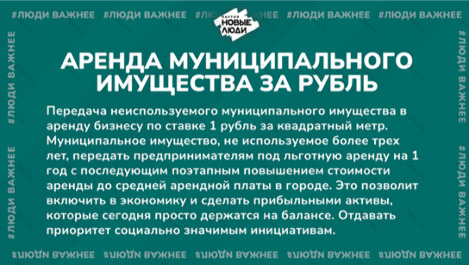 "НОВЫЕ ЛЮДИ" предлагают ввести аренду муниципального имущества за 1 рубль