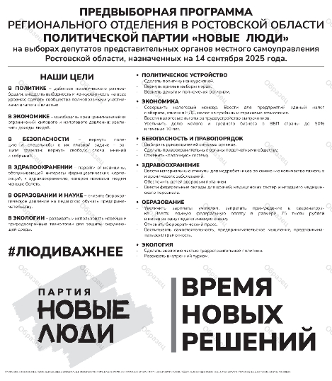 Предвыборная программа регионального отделения в Ростовской области Политической партии «НОВЫЕ ЛЮДИ»