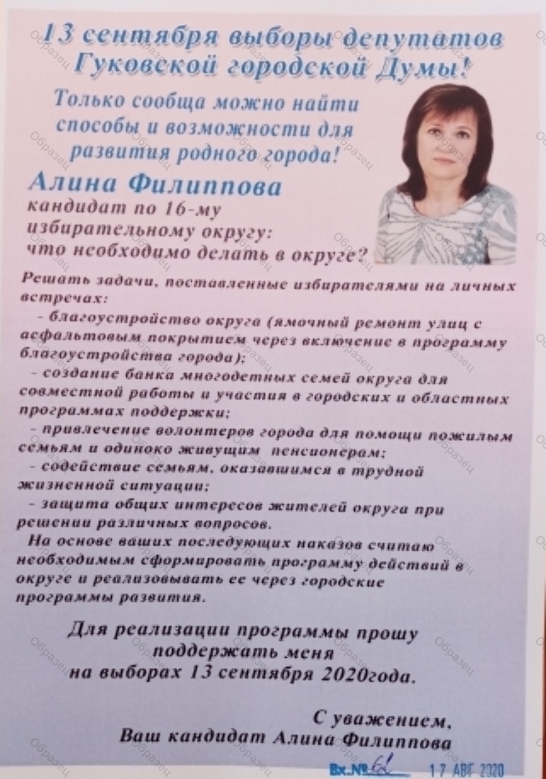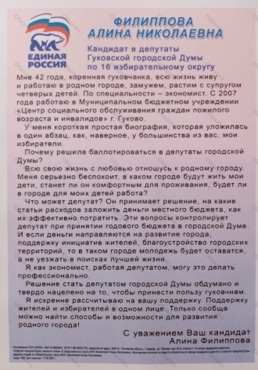 | Наименование агитационного материала | Предвыборная программа кандидата |