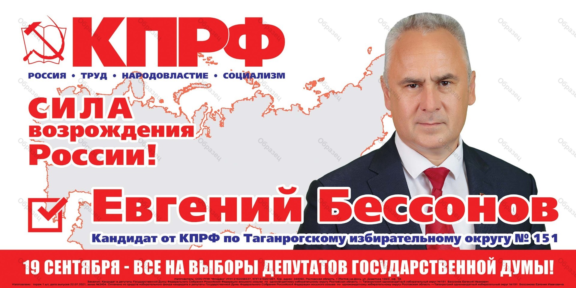 | Наименование агитационного материала | КПРФ сила возрождения России! Евгений Бессонов |