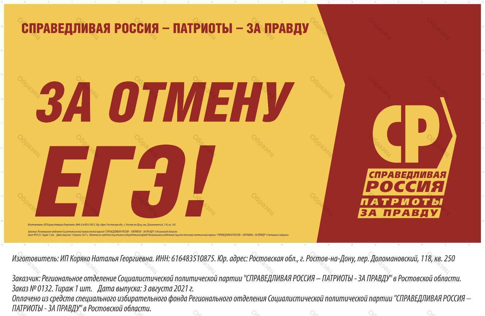 | Наименование агитационного материала | За отмену ЕГЭ! |