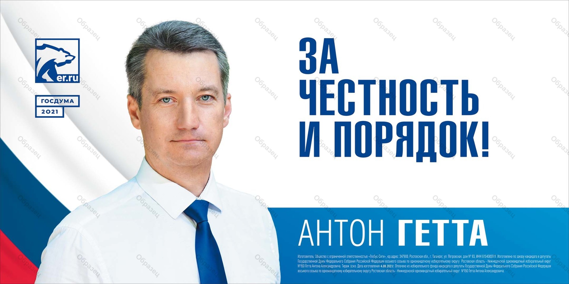 | Наименование агитационного материала | Антон Гетта - За честность и порядок! |