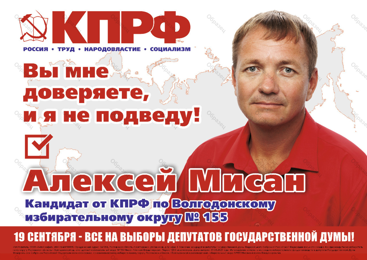 | Наименование агитационного материала | Вы мне доверяете, и я не подведу! |