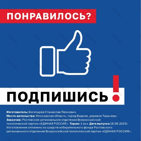 Оплачено из средств избирательного фонда избирательного объединения Ростовского регионального отделения Всероссийской политической партии "ЕДИНАЯ РОССИЯ"