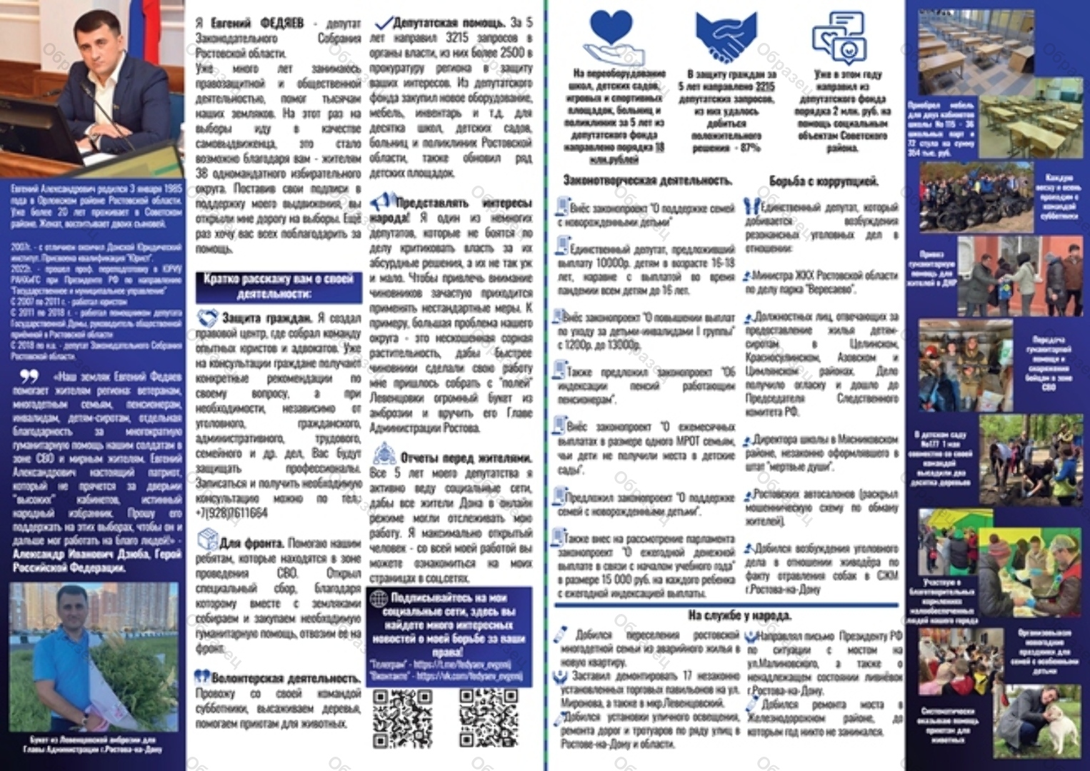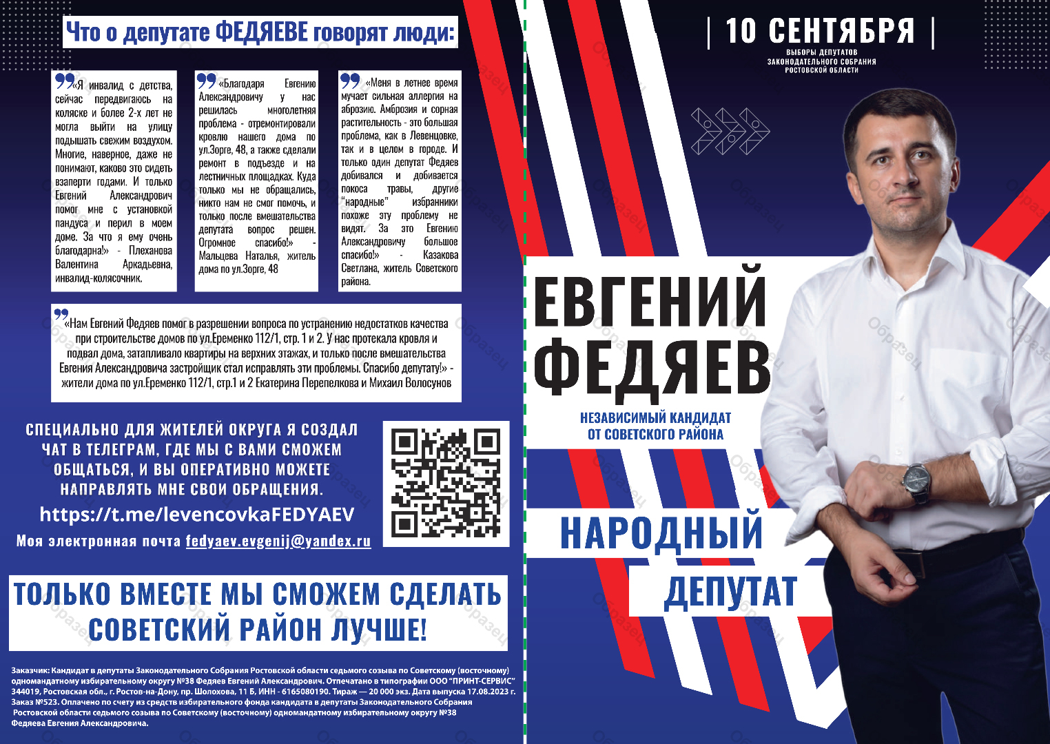 | Наименование агитационного материала | Евгений Федяев - народный депутат |