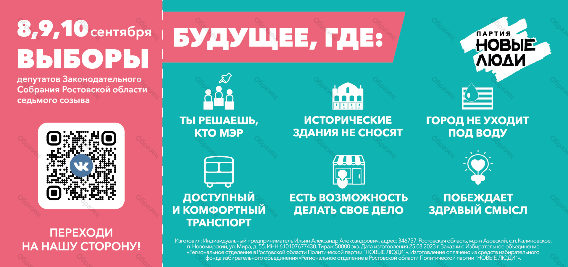 Оплачено из избирательного фонда Регионального отделения в Ростовской области Политической партии "НОВЫЕ ЛЮДИ"
