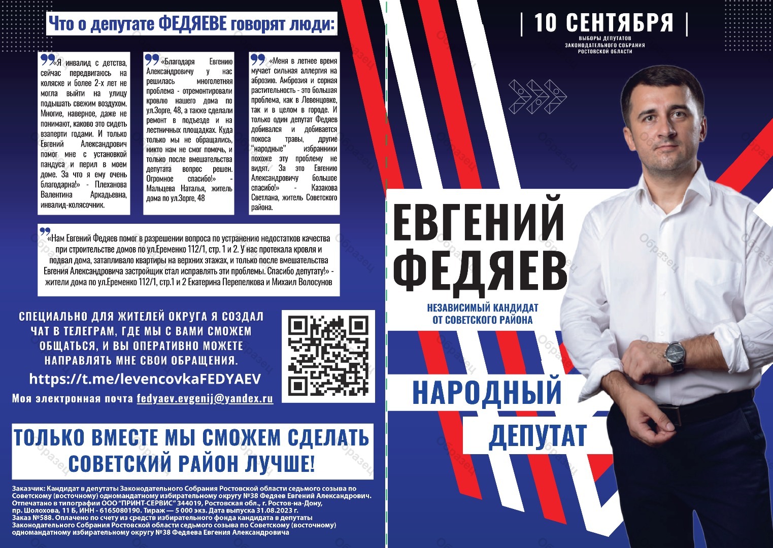 | Наименование агитационного материала | Евгений Федяев - народный депутат |