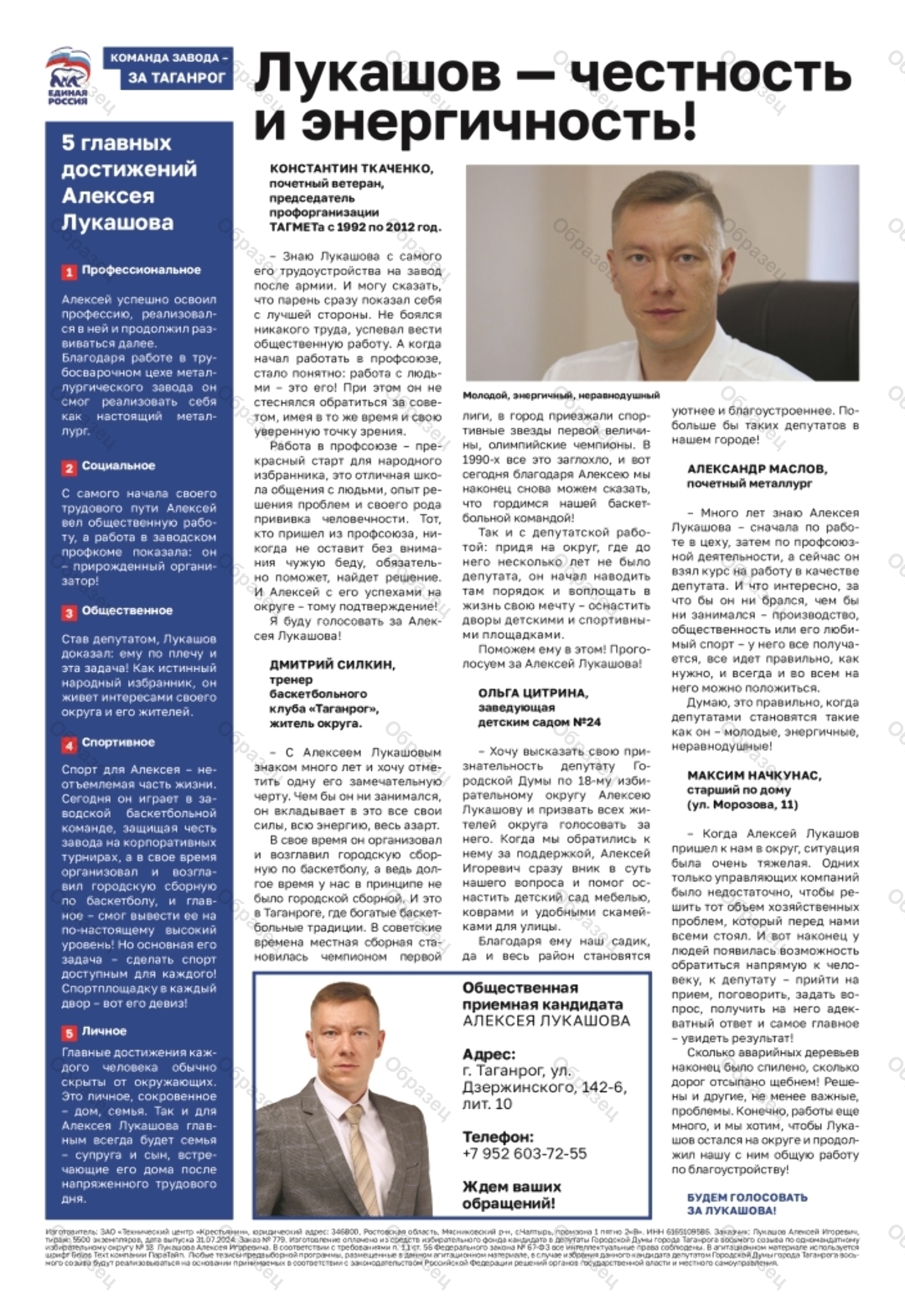 | Наименование агитационного материала | Команда завода - за Таганрог! |