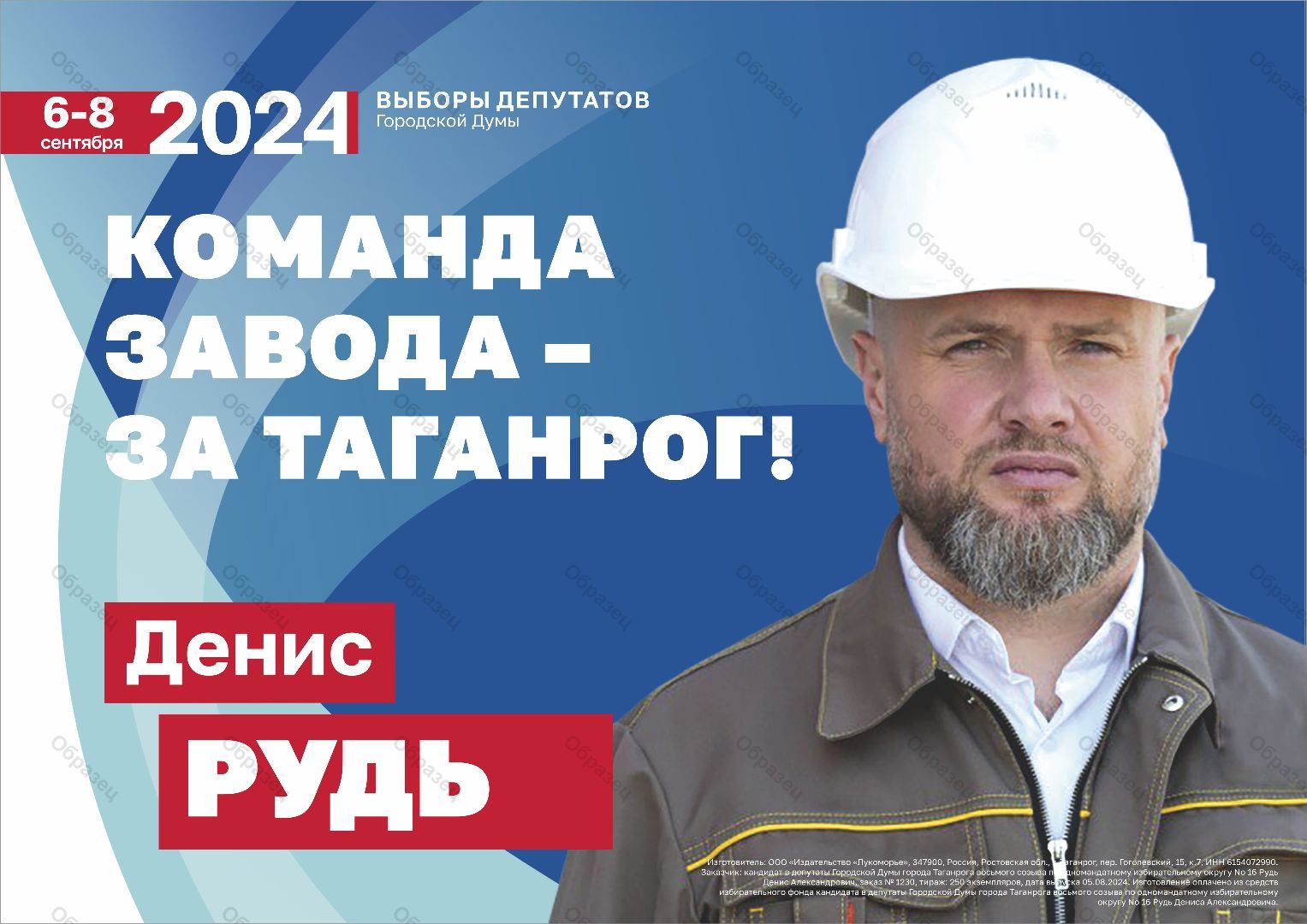 Оплачено за счет средств избирательного фонда кандидата в депутаты Городской Думы города Таганрога восьмого созыва по одномандатному избирательному округу № 16 Рудь Дениса Александровича