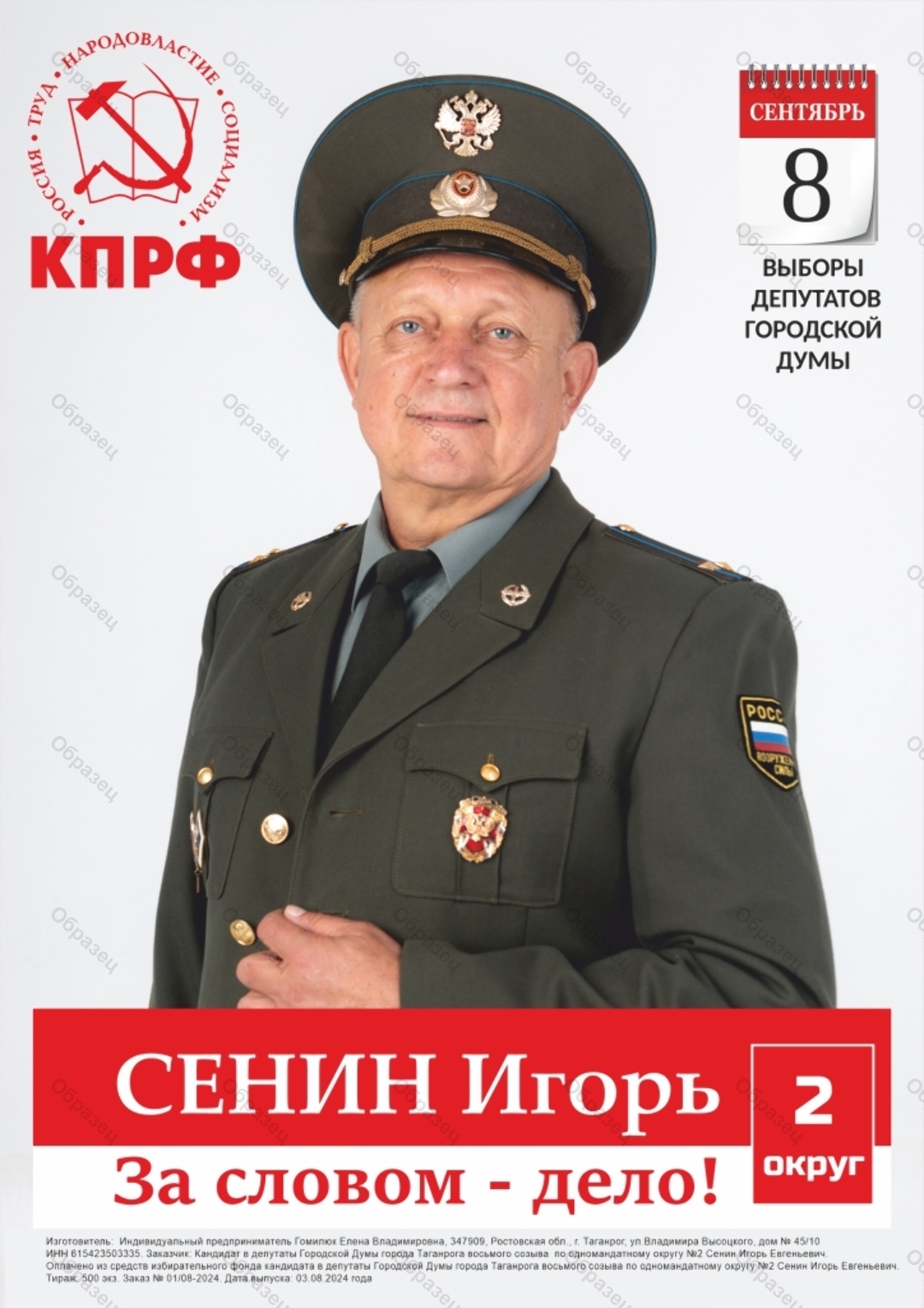 Оплачено за счет средств избирательного фонда кандидата в депутаты Городской Думы города Таганрога восьмого созыва по одномандатному избирательному округу № 2 Сенина Игоря Евгеньевича