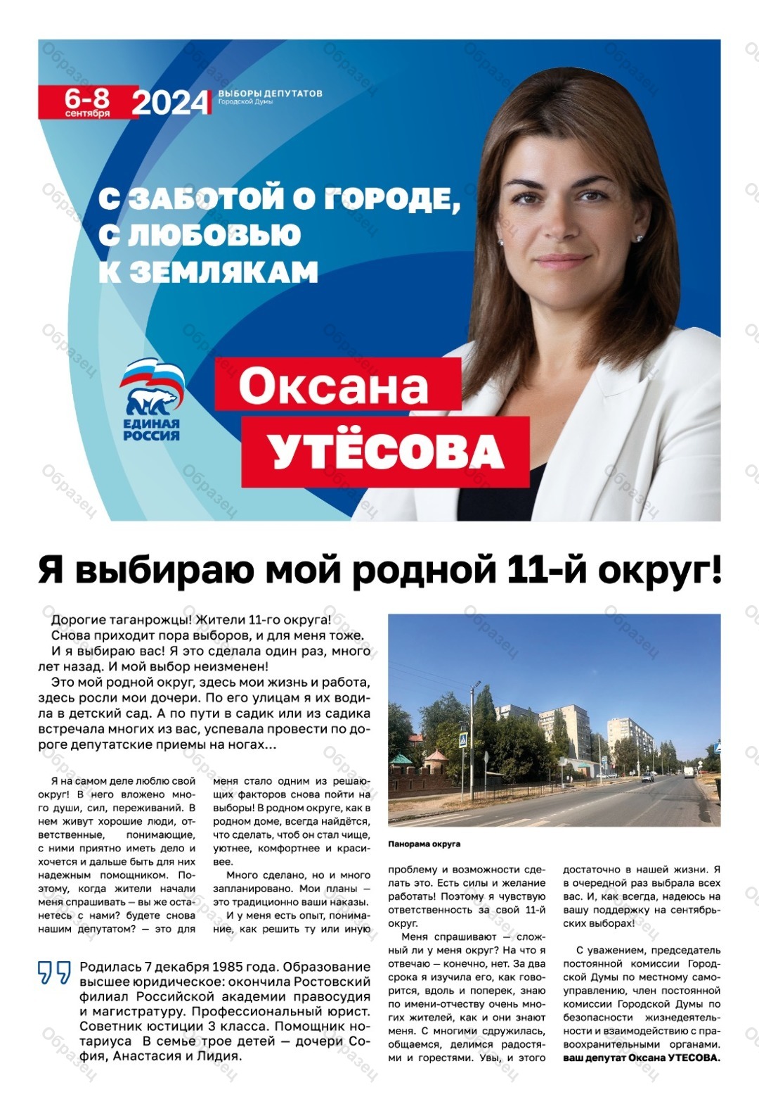 Оплачено за счет средств избирательного фонда кандидата в депутаты Городской Думы города Таганрога восьмого созыва по одномандатному избирательному округу № 11 Утесовой Оксаны Юрьевны