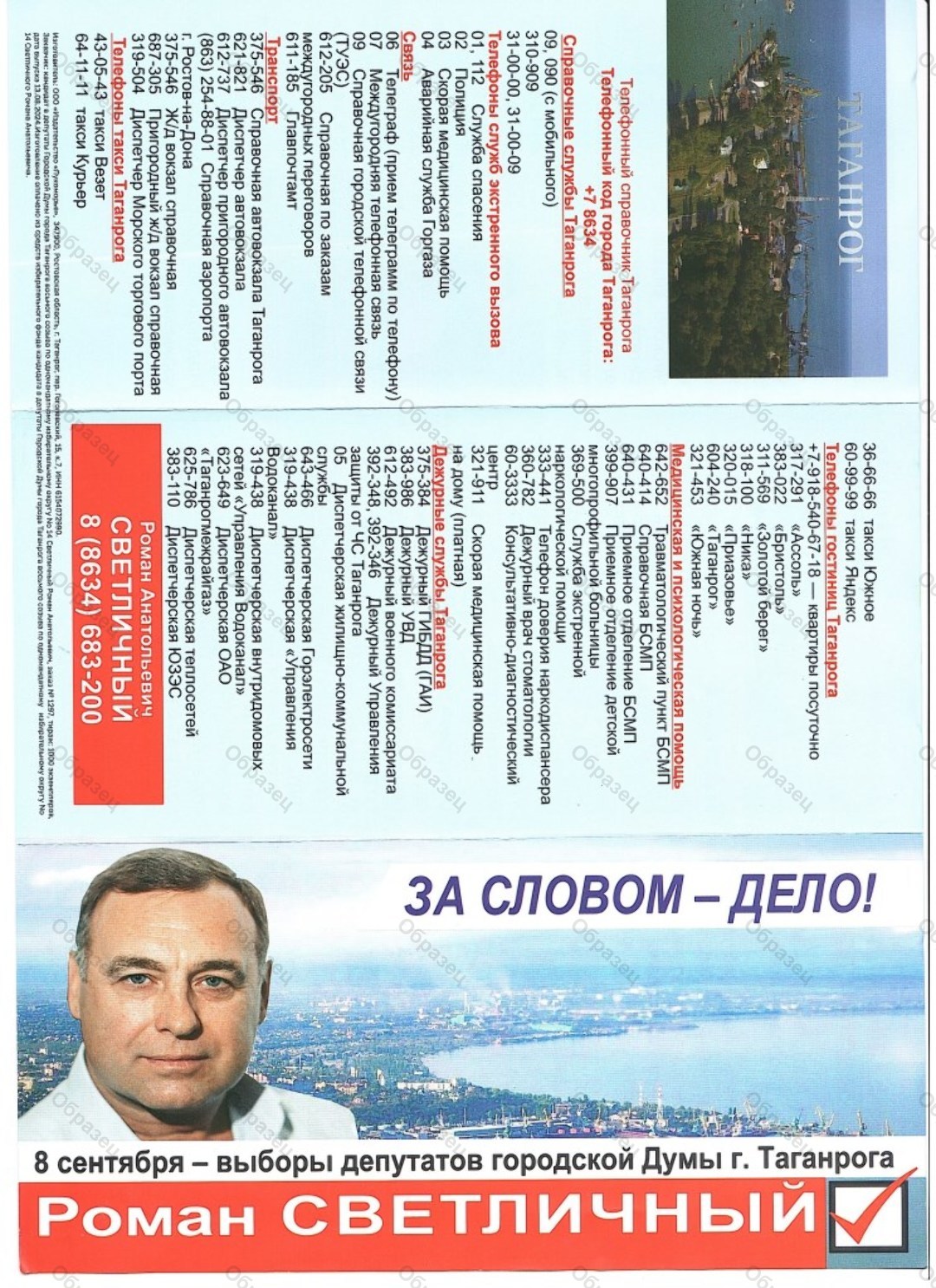 Оплачено за счет средств избирательного фонда кандидата в депутаты Городской Думы города Таганрога восьмого созыва по одномандатному избирательному округу № 14 Светличного Романа Анатольевича