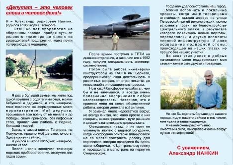 Оплачено за счет средств избирательного фонда кандидата в депутаты Городской Думы города Таганрога восьмого созыва по одномандатному избирательному округу № 3 Нанкина Александра Борисовича