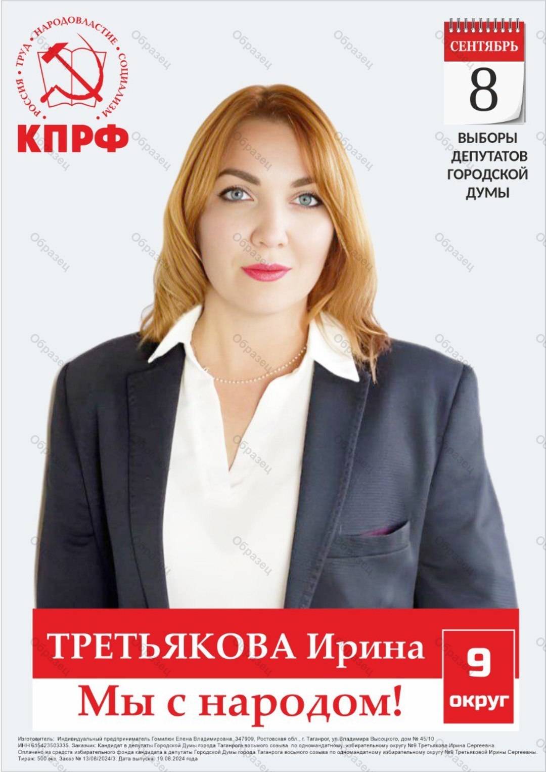 Оплачено за счет средств избирательного фонда кандидата в депутаты Городской Думы города Таганрога восьмого созыва по одномандатному избирательному округу № 9 Третьяковой Ирины Сергеевны