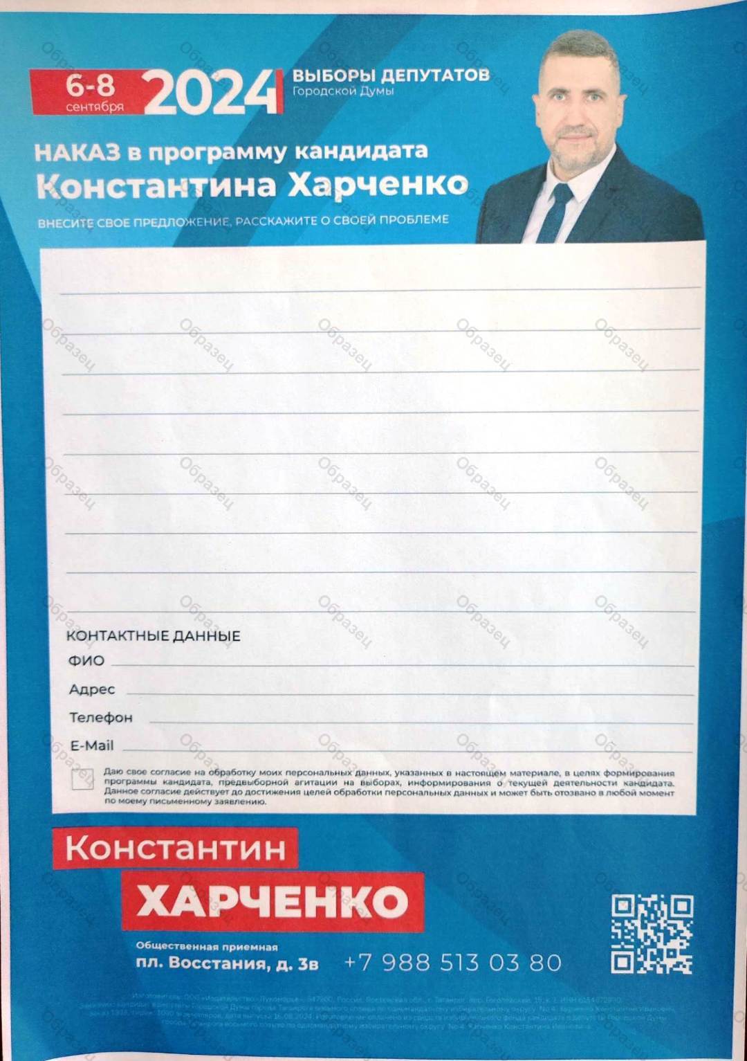 | Наименование агитационного материала | Наказ в программу кандидата Константина Харченко |