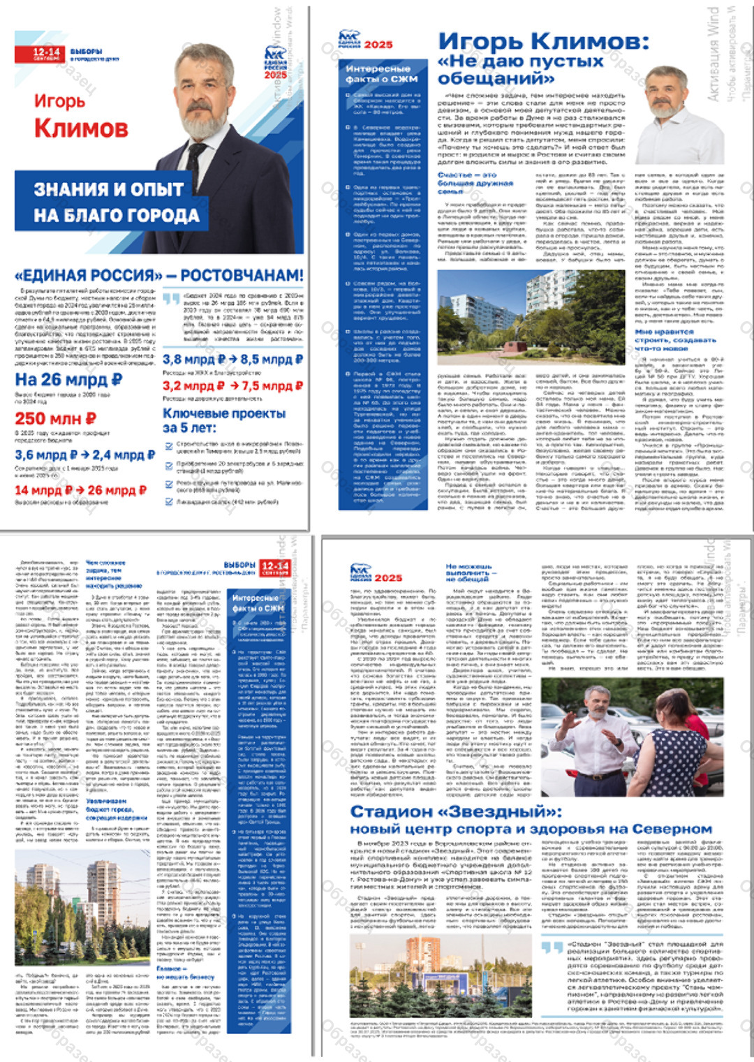 Изготовление оплачено из средств избирательного фонда кандидата в депутаты Ростовской-на-Дону городской Думы восьмого созыва по Ворошиловскому избирательному округу №3 Климова Игоря Вячеславовича