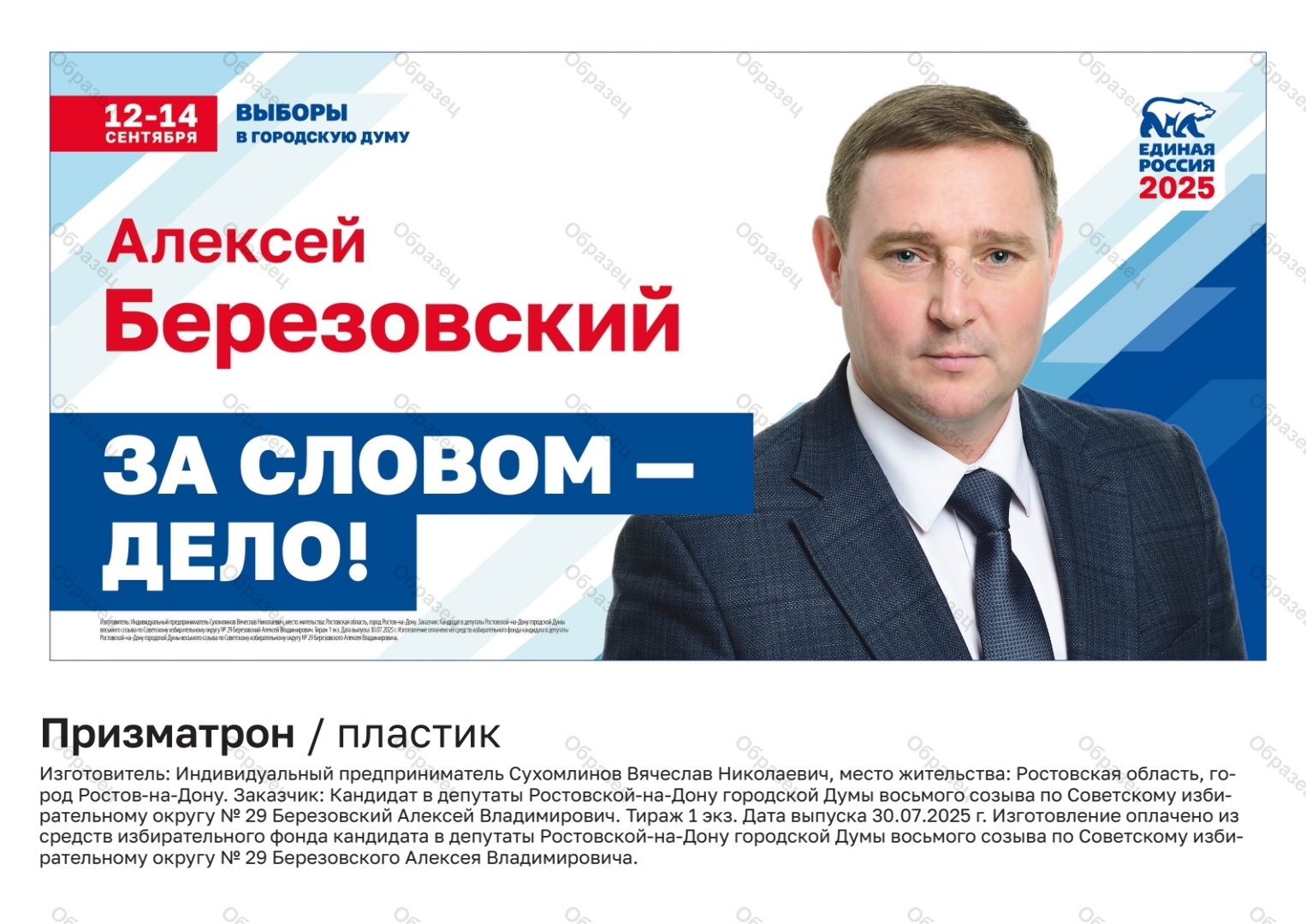 | Вид материала | агитационный печатный материал на пластике для призматрона |
