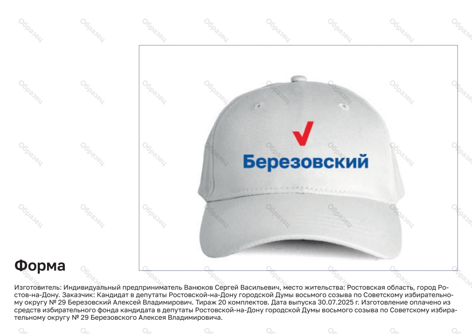 Оплачено из средств избирательного фонда кандидата в депутаты Ростовской-на-Дону городской Думы восьмого созыва по Советскому одномандатному избирательному округу № 29 Березовского Алексея Владимировича