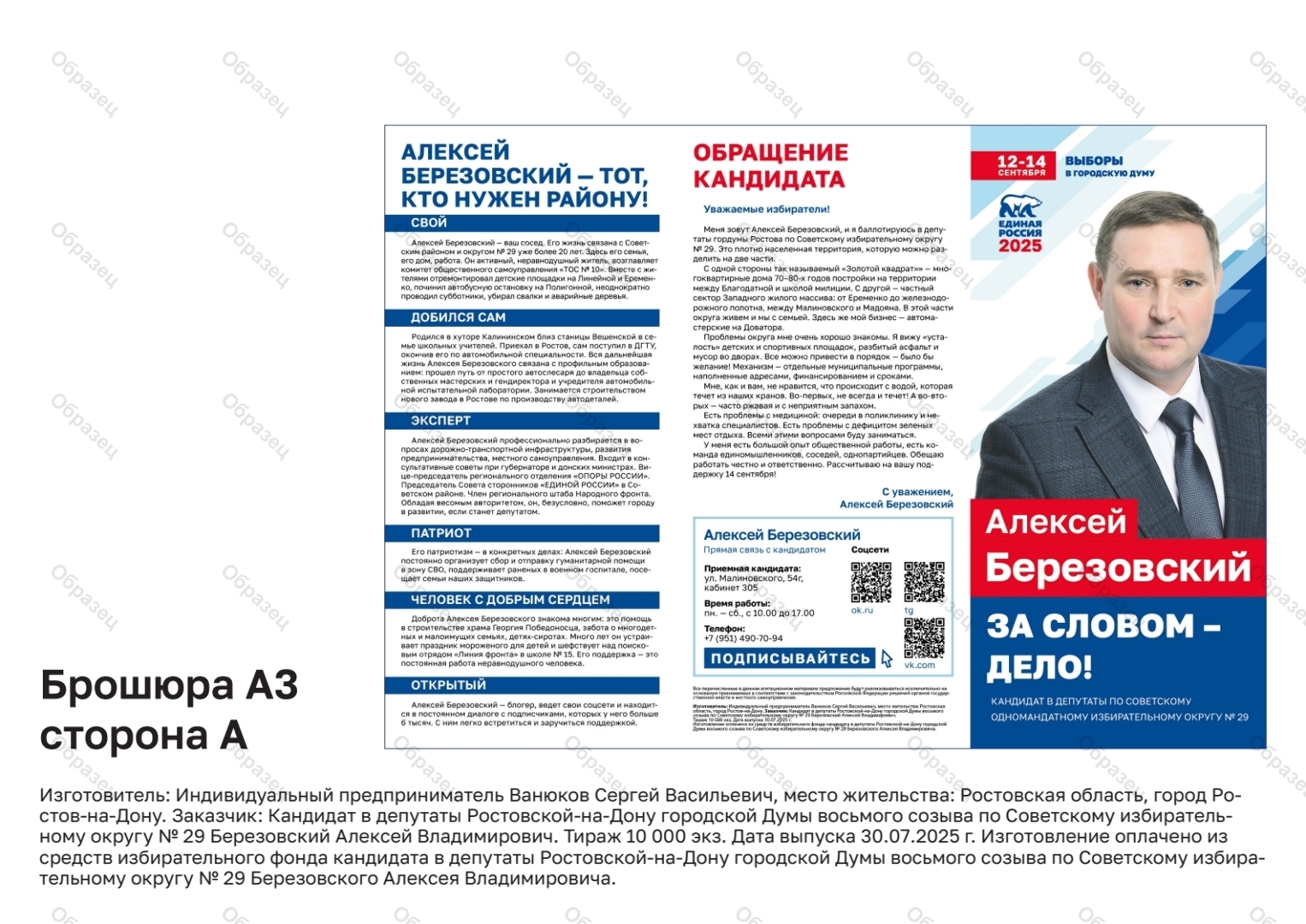 | Наименование агитационного материала | Алексей Березовский ЗА СЛОВОМ - ДЕЛО! |