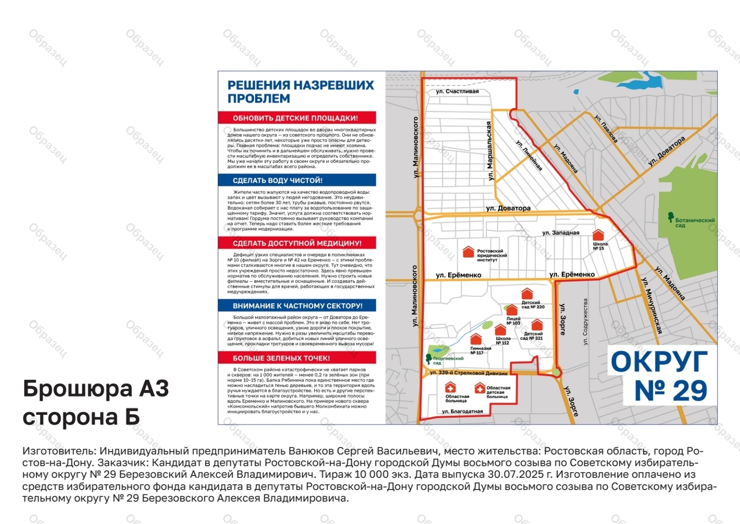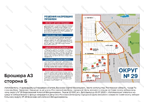 Оплачено из средств избирательного фонда кандидата в депутаты Ростовской-на-Дону городской Думы восьмого созыва по Советскому одномандатному избирательному округу № 29 Березовского Алексея Владимировича