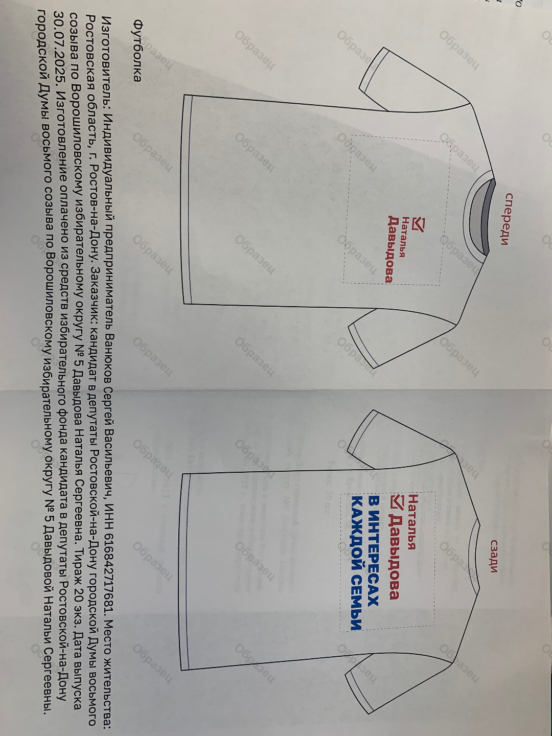 Изготовление оплачено из средств избирательного фонда кандидата в депутаты Ростовской-на-Дону городской Думы восьмого созыва по Ворошиловскому избирательному округу №5 Давыдовой Натальи Сергеевны