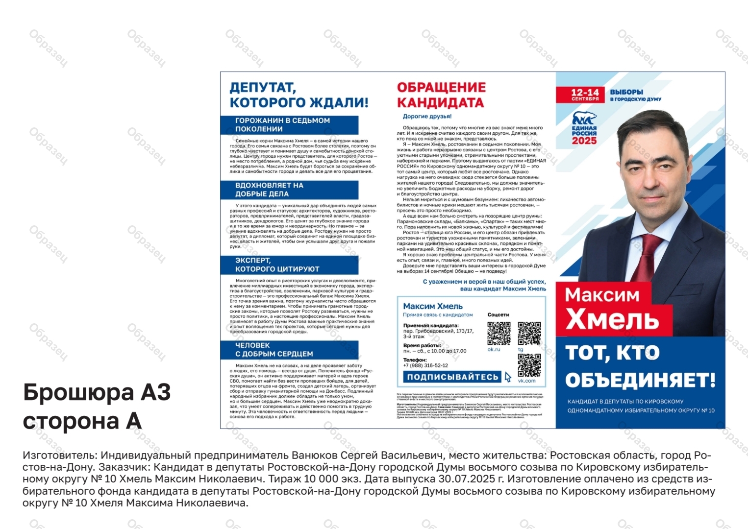 Оплачено из средств избирательного фонда кандидата в депутаты Ростовской-на-Дону городской Думы восьмого созыва по Кировскому одномандатному округу №10 Хмеля Максима Николаевича