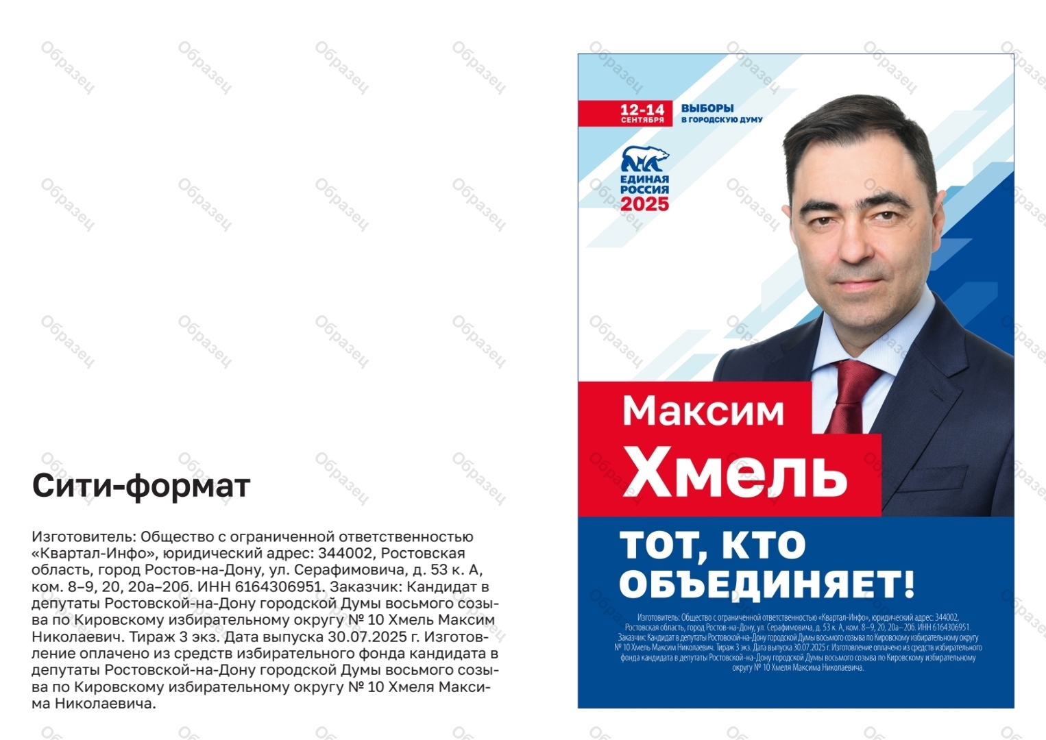 | Наименование агитационного материала | Максим Хмель |