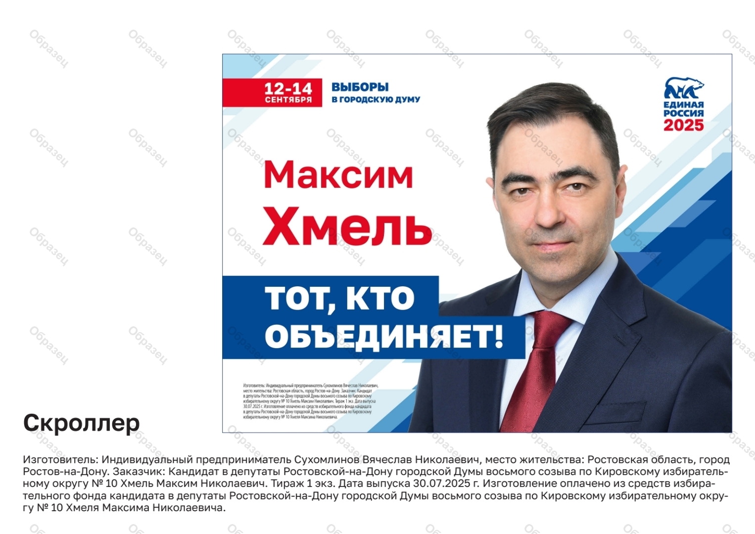Оплачено из средств избирательного фонда кандидата в депутаты Ростовской-на-Дону городской Думы восьмого созыва по Кировскому одномандатному округу №10 Хмеля Максима Николаевича