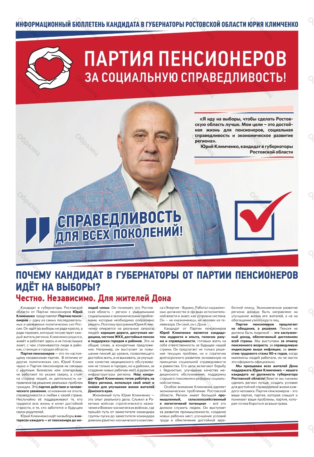 | Наименование агитационного материала | "Справедливость для всех поколений!" |