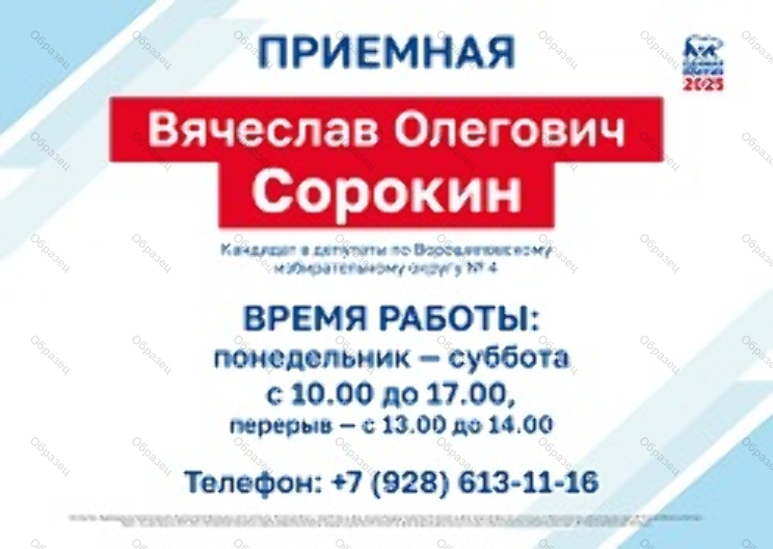 Изготовление оплачено из средств избирательного фонда кандидата в депутаты Ростовской-на-Дону городской Думы восьмого созыва по Ворошиловскому избирательному округу № 4 Сорокина Вячеслава Олеговича