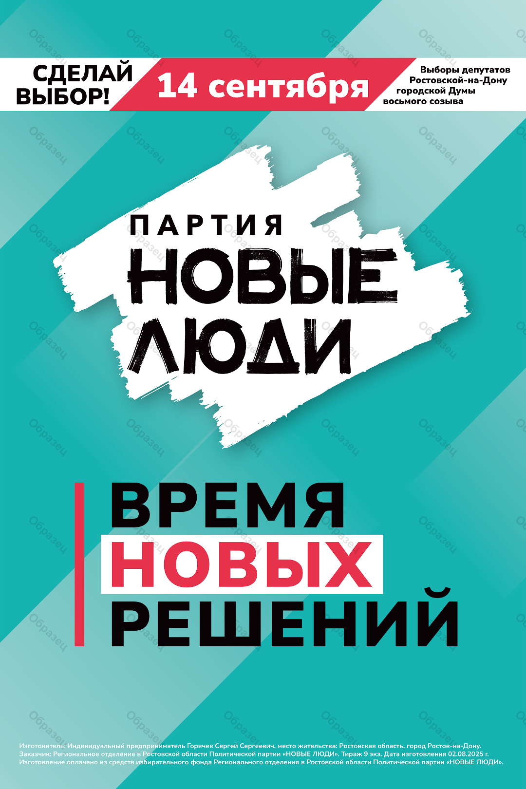 | Заказчик | Региональное отделение в Ростовской области Политической партии "НОВЫЕ ЛЮДИ" |