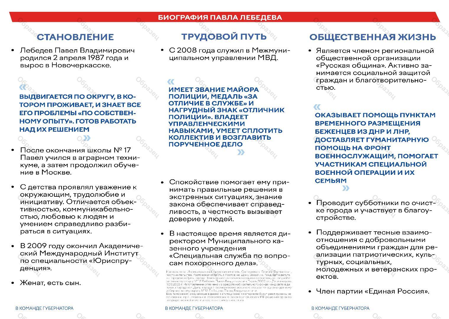 | Кандидат | Лебедев Павел Владимирович |