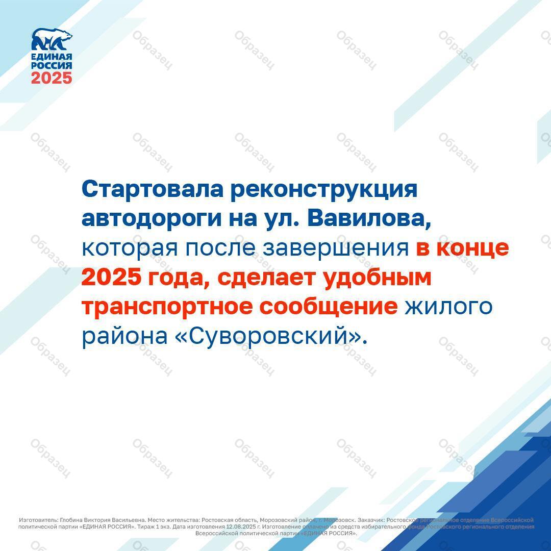| Наименование агитационного материала | Автодорога на ул. Вавилова |