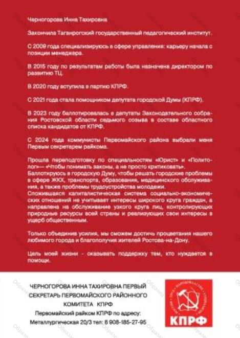 | Субъект выдвижения (кем выдвинут) | "КОММУНИСТИЧЕСКАЯ ПАРТИЯ РОССИЙСКОЙ ФЕДЕРАЦИИ" |