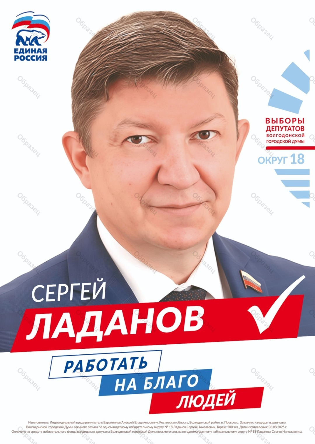 | Наименование агитационного материала | Сергей Ладанов работать на благо людей |