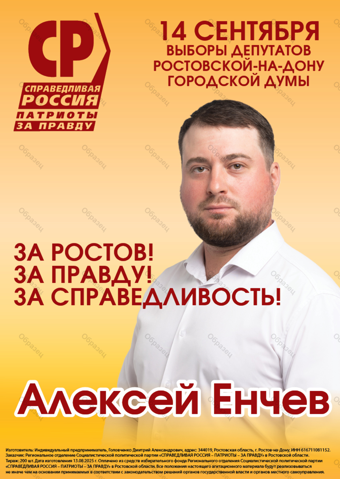 Оплачено из средств избирательного фонда Регионального отделения Социалистической политической партии «СПРАВЕДЛИВАЯ РОССИЯ – ПАТРИОТЫ – ЗА ПРАВДУ» в Ростовской области