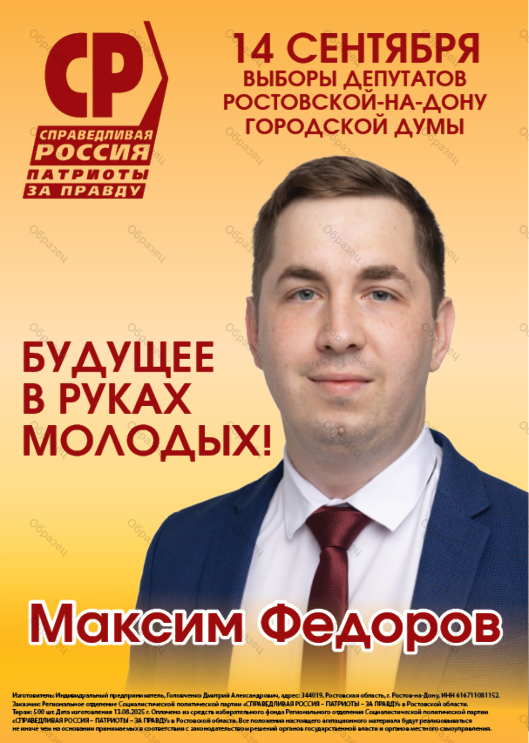 Оплачено из средств избирательного фонда Регионального отделения Социалистической политической партии «СПРАВЕДЛИВАЯ РОССИЯ – ПАТРИОТЫ – ЗА ПРАВДУ» в Ростовской области