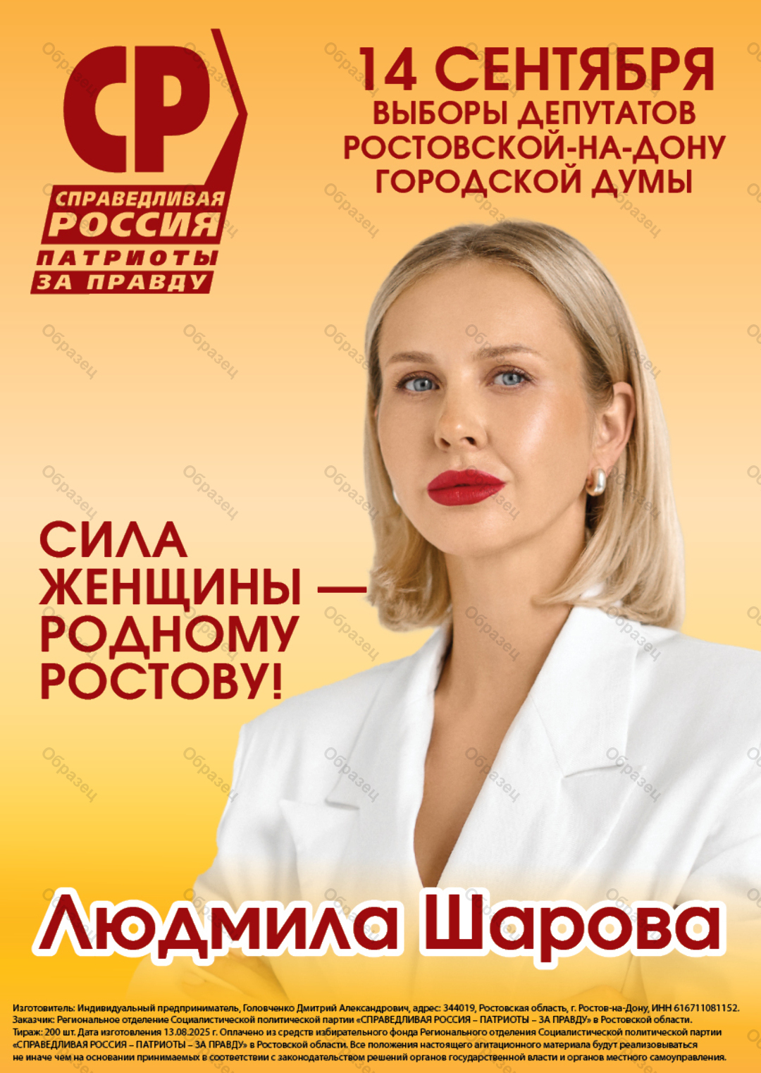 Оплачено из средств избирательного фонда Регионального отделения Социалистической политической партии «СПРАВЕДЛИВАЯ РОССИЯ – ПАТРИОТЫ – ЗА ПРАВДУ» в Ростовской области