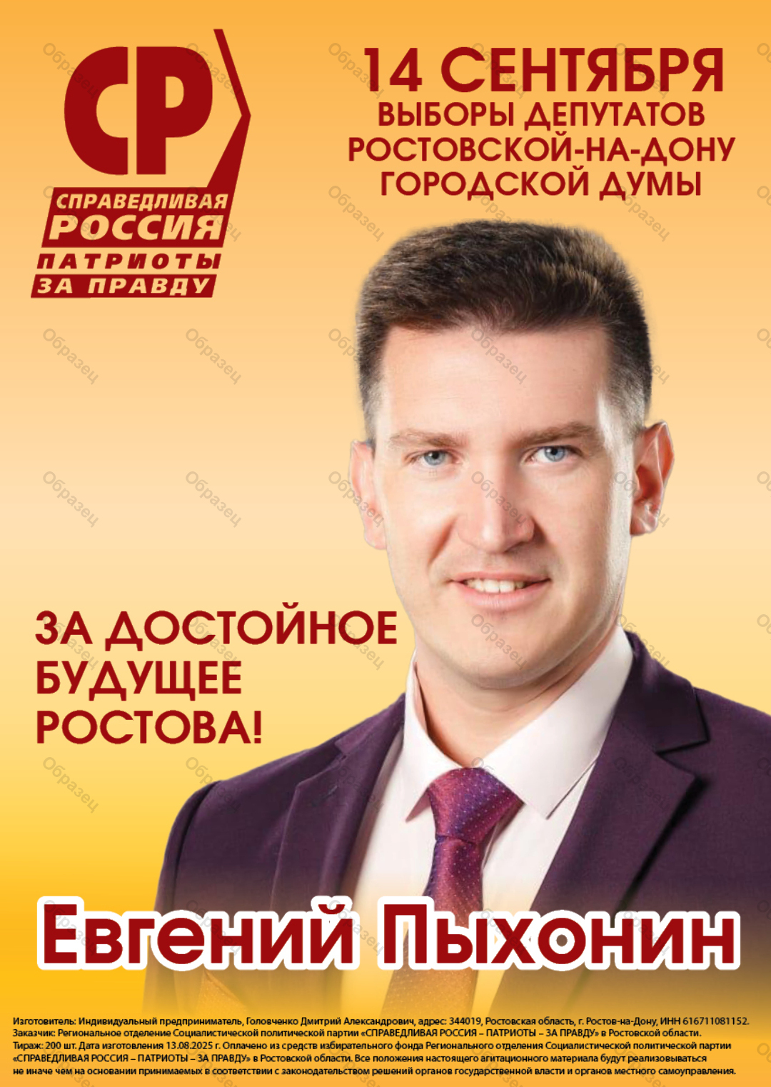 Оплачено из средств избирательного фонда Регионального отделения Социалистической политической партии «СПРАВЕДЛИВАЯ РОССИЯ – ПАТРИОТЫ – ЗА ПРАВДУ» в Ростовской области