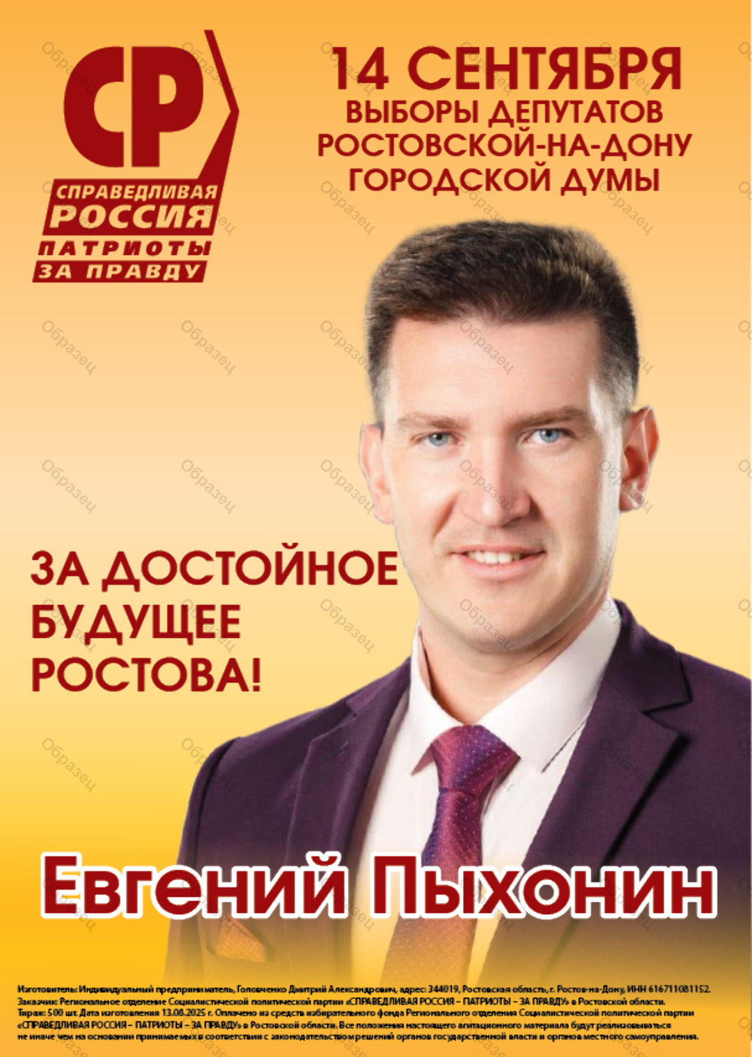 Оплачено из средств избирательного фонда Регионального отделения Социалистической политической партии «СПРАВЕДЛИВАЯ РОССИЯ – ПАТРИОТЫ – ЗА ПРАВДУ» в Ростовской области