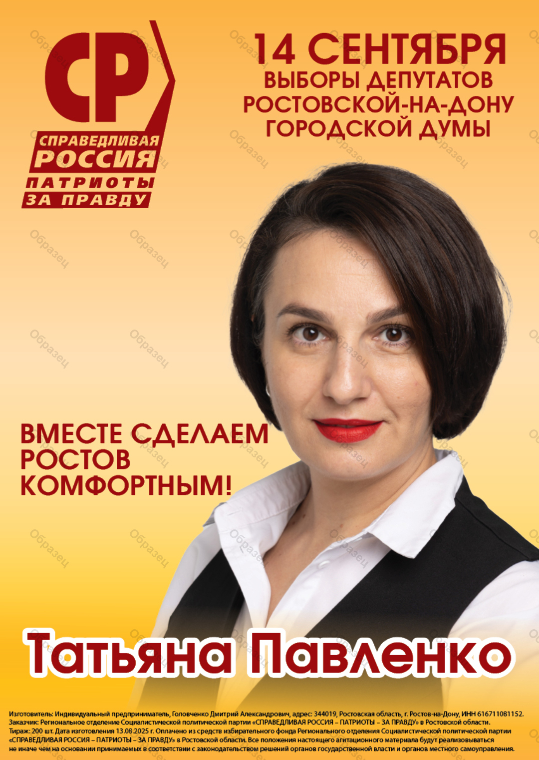Оплачено из средств избирательного фонда Регионального отделения Социалистической политической партии «СПРАВЕДЛИВАЯ РОССИЯ – ПАТРИОТЫ – ЗА ПРАВДУ» в Ростовской области