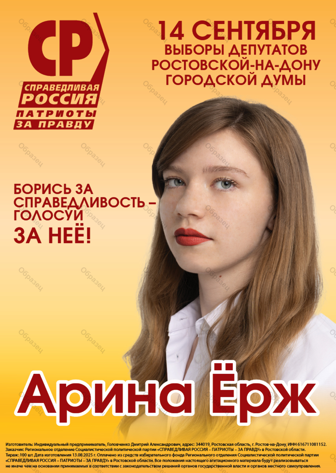 Оплачено из средств избирательного фонда Регионального отделения Социалистической политической партии «СПРАВЕДЛИВАЯ РОССИЯ – ПАТРИОТЫ – ЗА ПРАВДУ» в Ростовской области