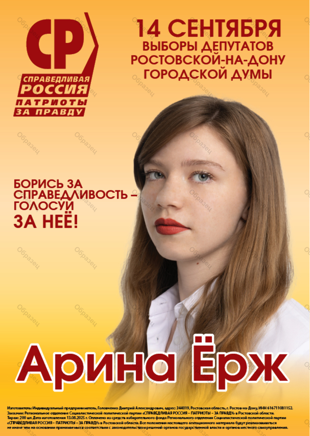 Оплачено из средств избирательного фонда Регионального отделения Социалистической политической партии «СПРАВЕДЛИВАЯ РОССИЯ – ПАТРИОТЫ – ЗА ПРАВДУ» в Ростовской области