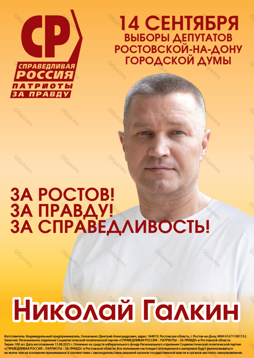 Оплачено из средств избирательного фонда Регионального отделения Социалистической политической партии «СПРАВЕДЛИВАЯ РОССИЯ – ПАТРИОТЫ – ЗА ПРАВДУ» в Ростовской области