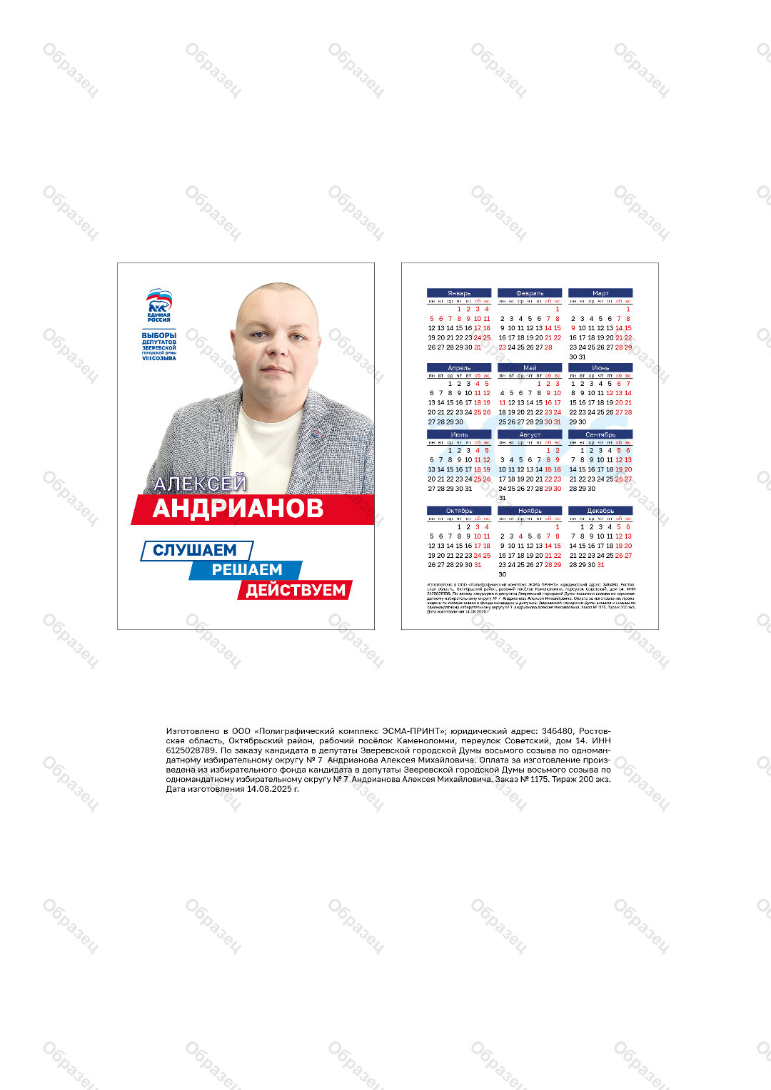 | Наименование агитационного материала | Карманный календарь |