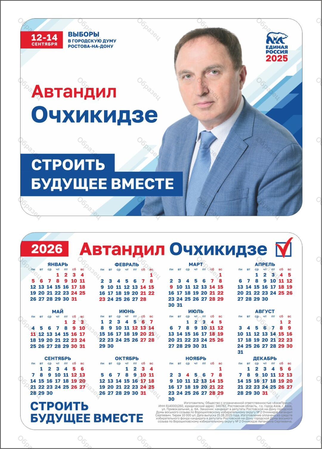 Изготовление оплачено из средств избирательного фонда кандидата в депутаты Ростовской-на-Дону городской Думы восьмого созыва по Ворошиловскому избирательному округу № 2 Очхикидзе Автандила Сергеевича