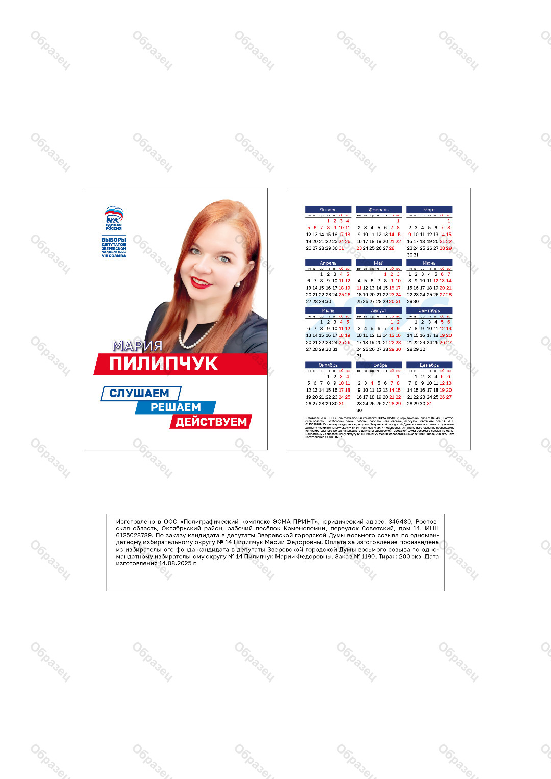 | Наименование агитационного материала | Карманный календарь |