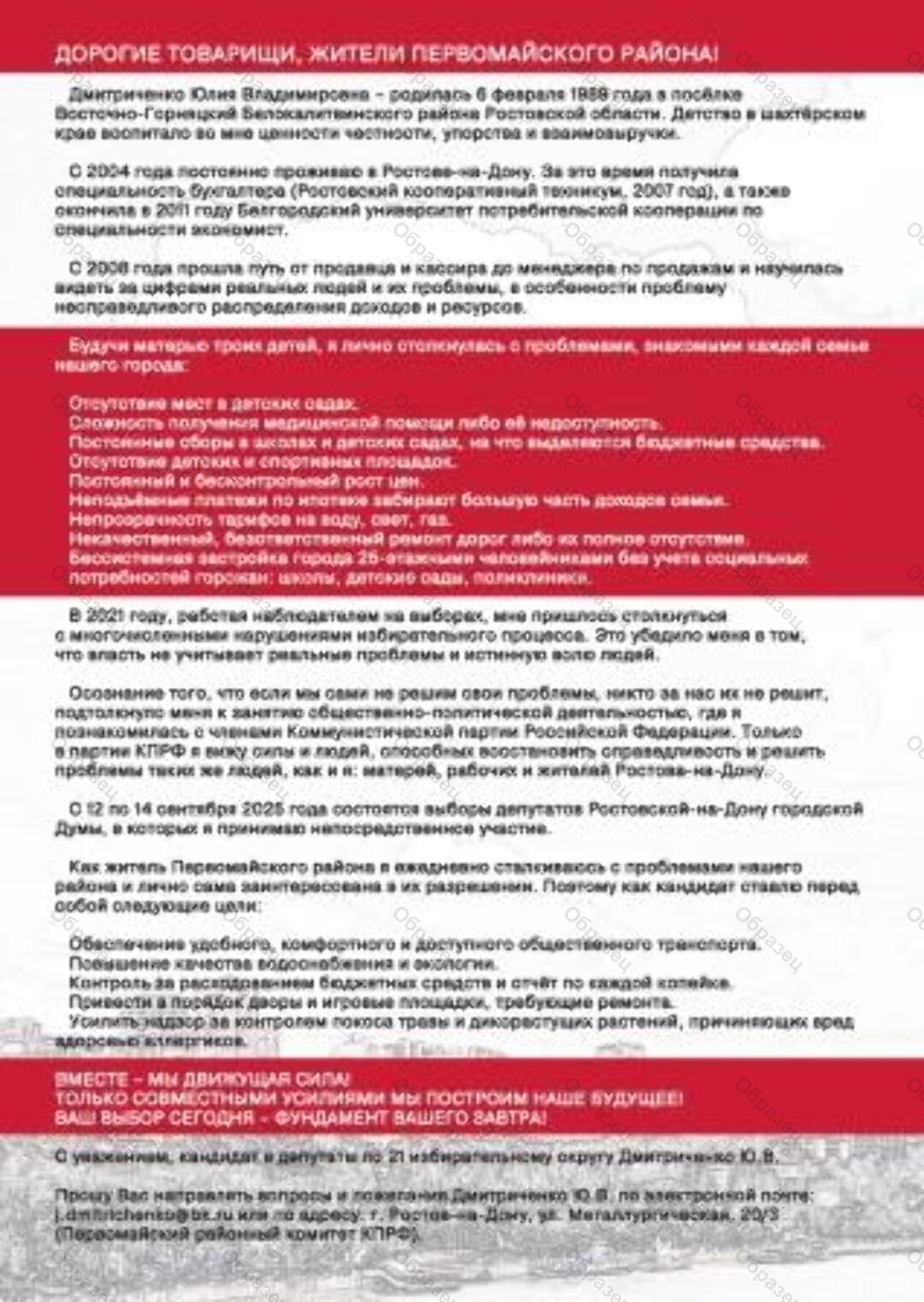 | Кандидат | Дмитриченко Юлия Владимировна |