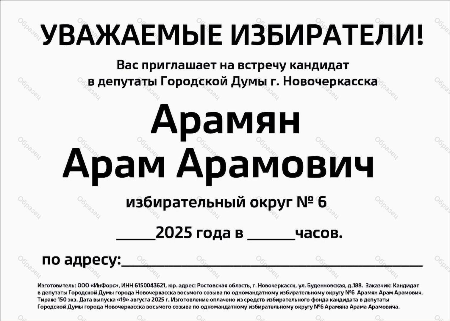| Наименование агитационного материала | Листовка "Приглашение" |