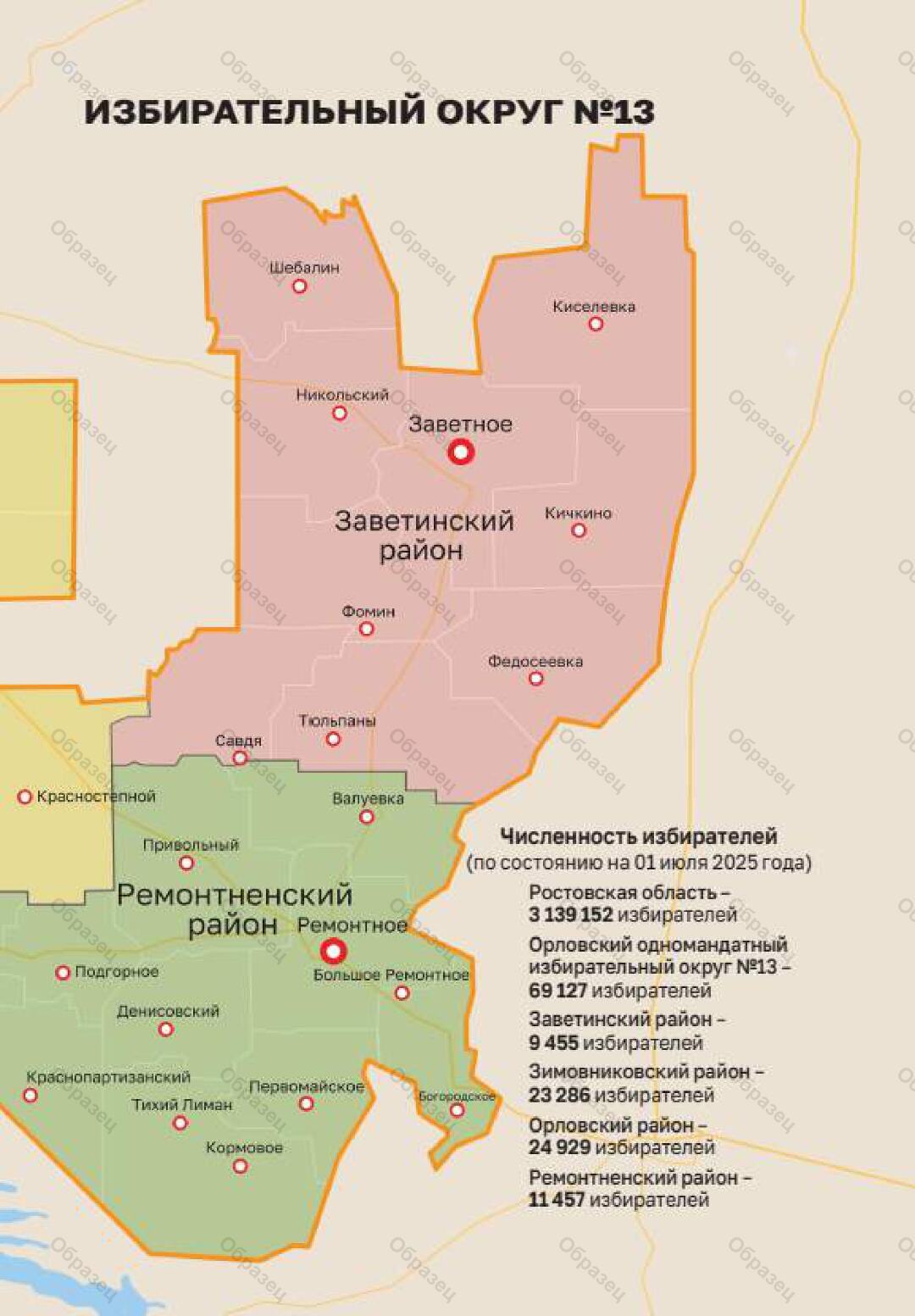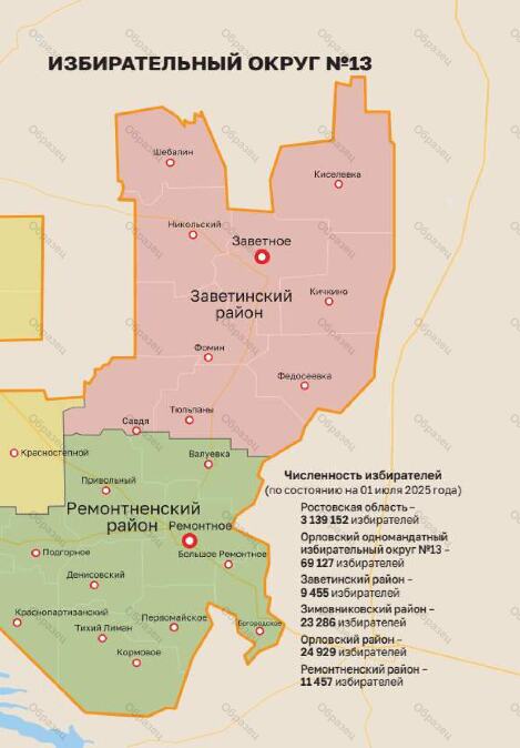 Ростовская область, дополнительные выборы депутата Законодательного Собрания Ростовской области седьмого созыва по Орловскому одномандатному избирательному округу № 13 14 сентября 2025 года